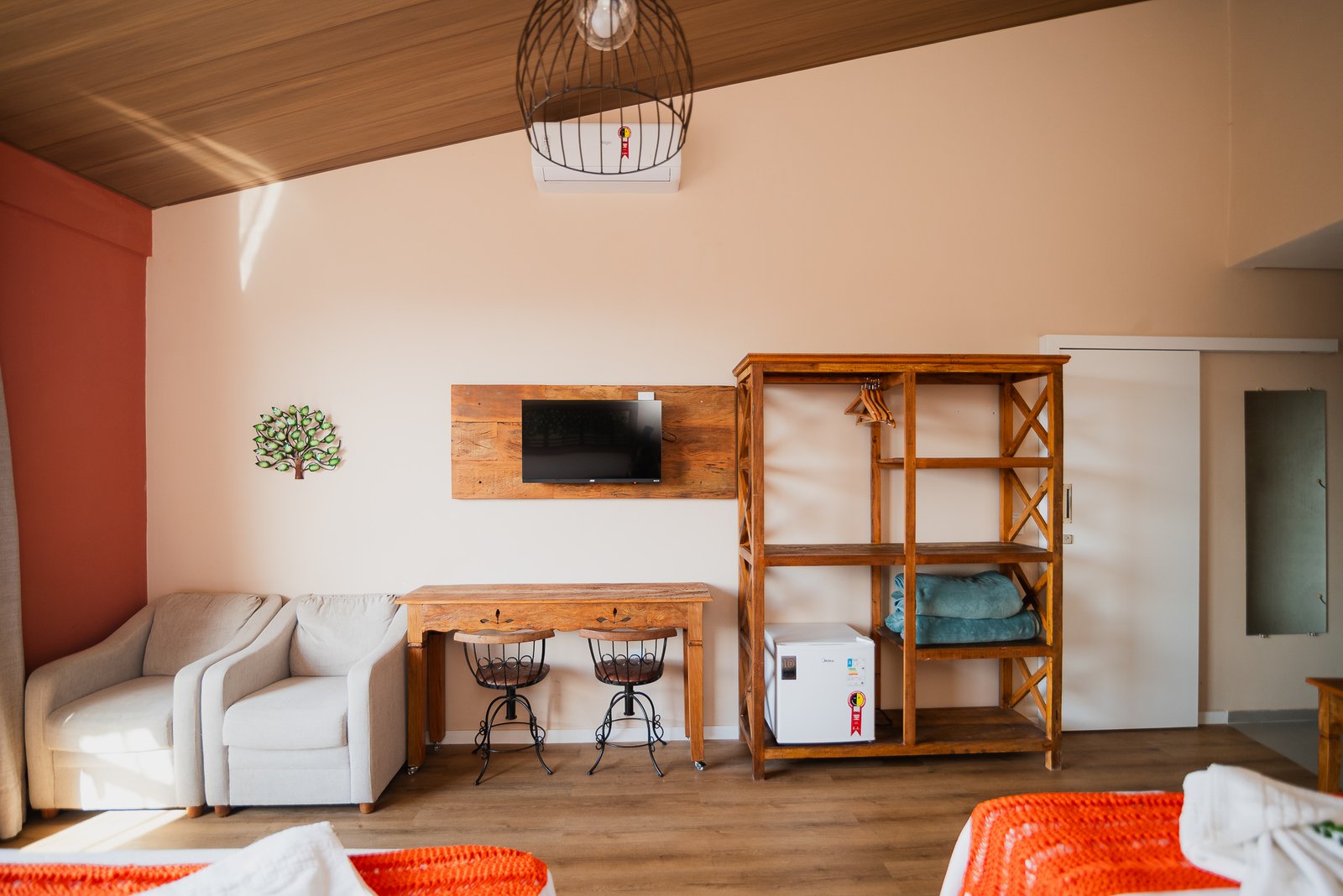 O Quarto Família foi projetado para oferecer mais espaço e conforto, ideal para quem deseja compartilhar momentos especiais a dois, em grupo ou com toda a família. Amplo e acolhedor, valoriza a harmonia entre o rústico e o moderno, com paleta de cores suaves, detalhes elegantes e um design que une charme e praticidade.